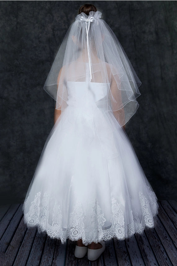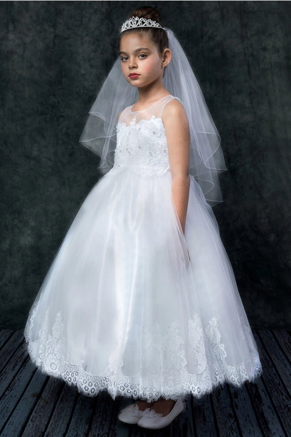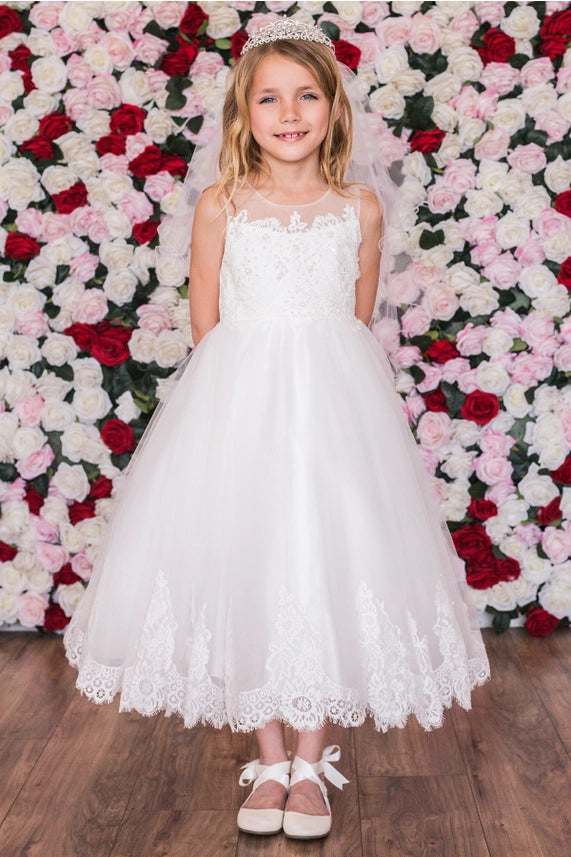🤍 Elodie Dress – Elegant Illusion Neck Communion & Flower Girl Dress 🤍