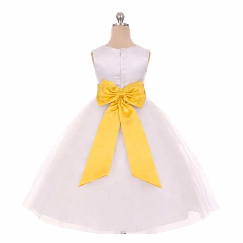 Featuring a smooth satin bodice, a full layered tulle skirt, and a striking coloured satin sash with an oversized bow , the Dolly Dress brings elegance, charm, and a touch of colour to any bridal party ✨