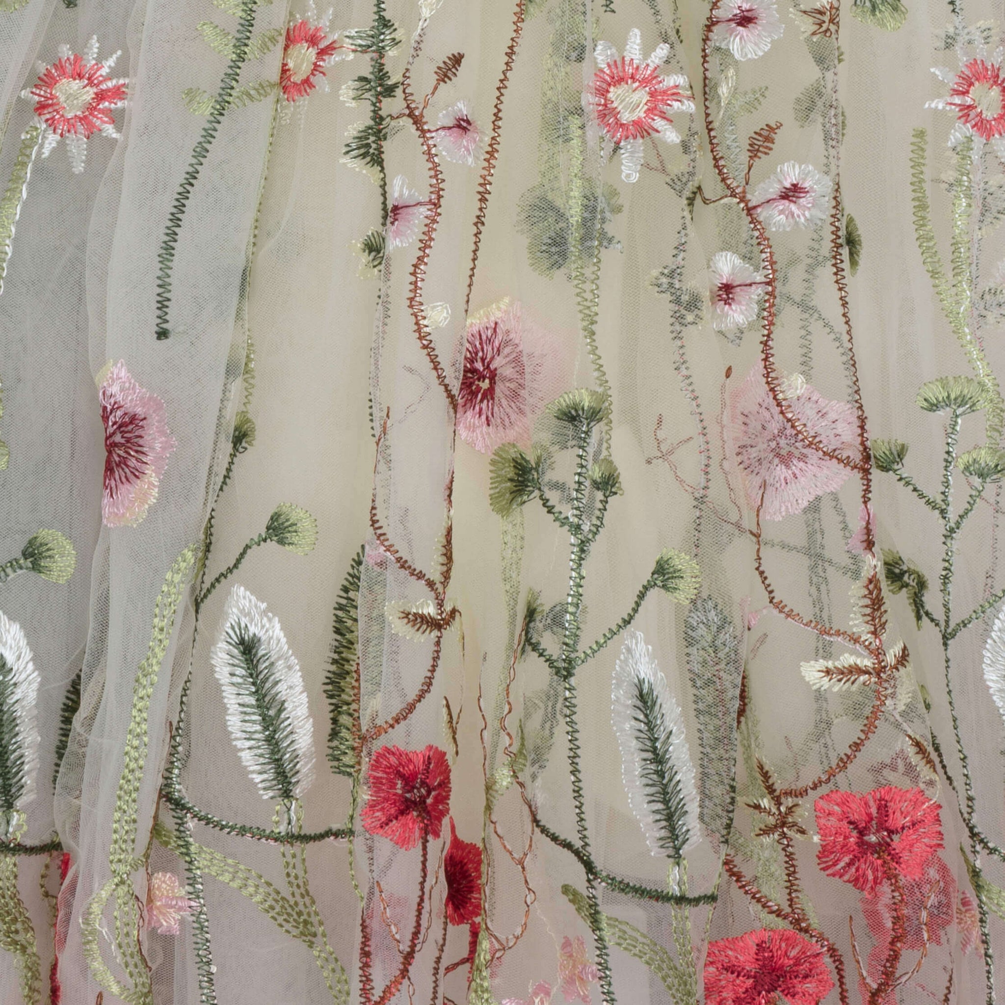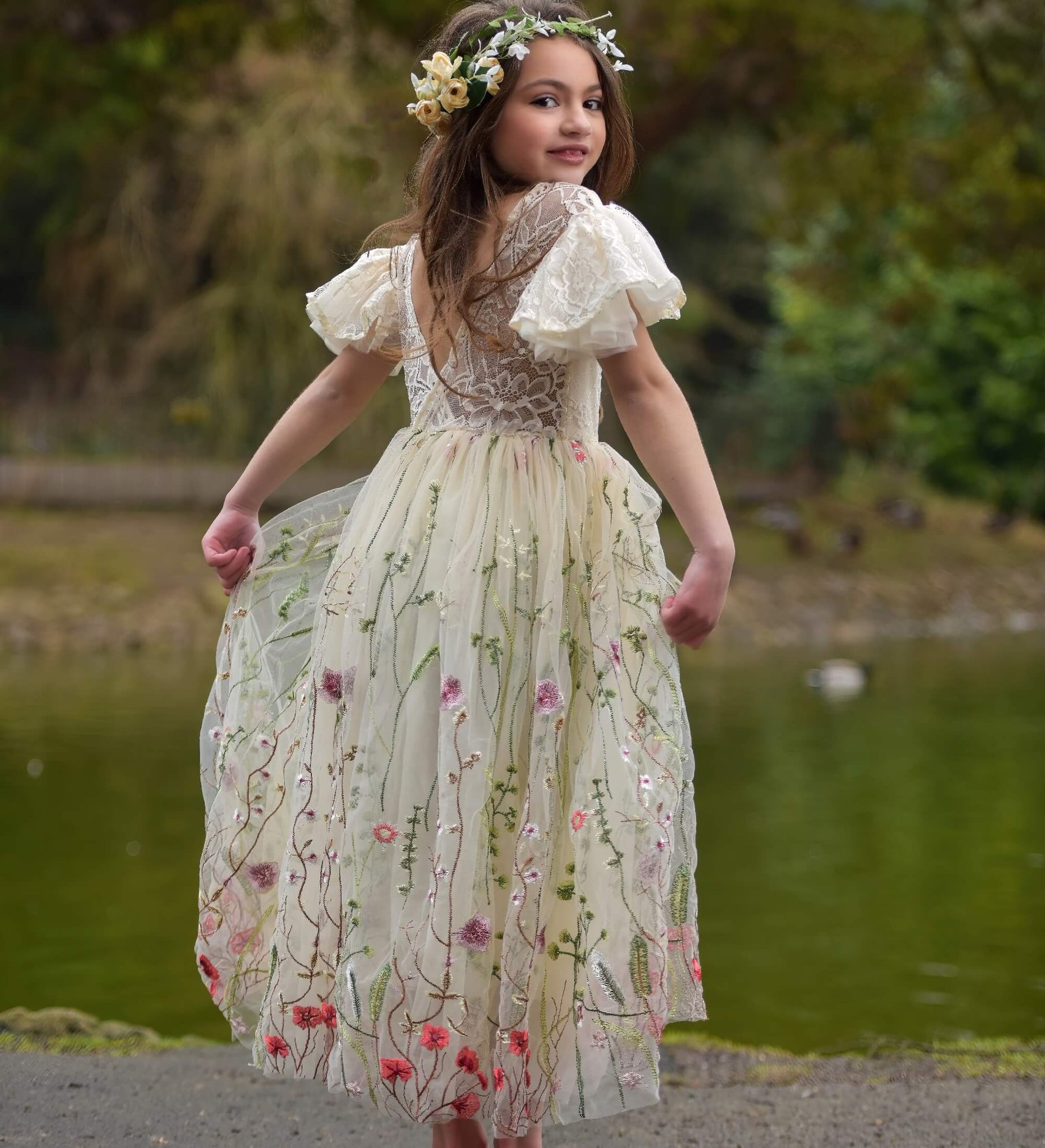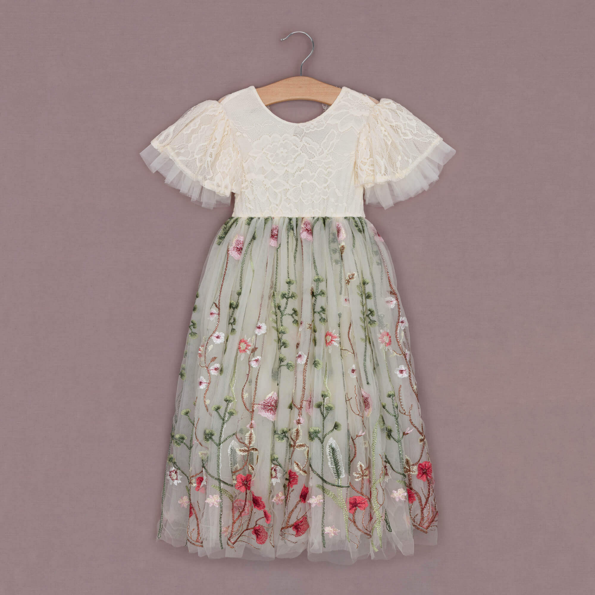 Whispering Poppy Dress – French Vanilla | Girls’ Embroidered Tulle Dress for Weddings & Special Occasions
