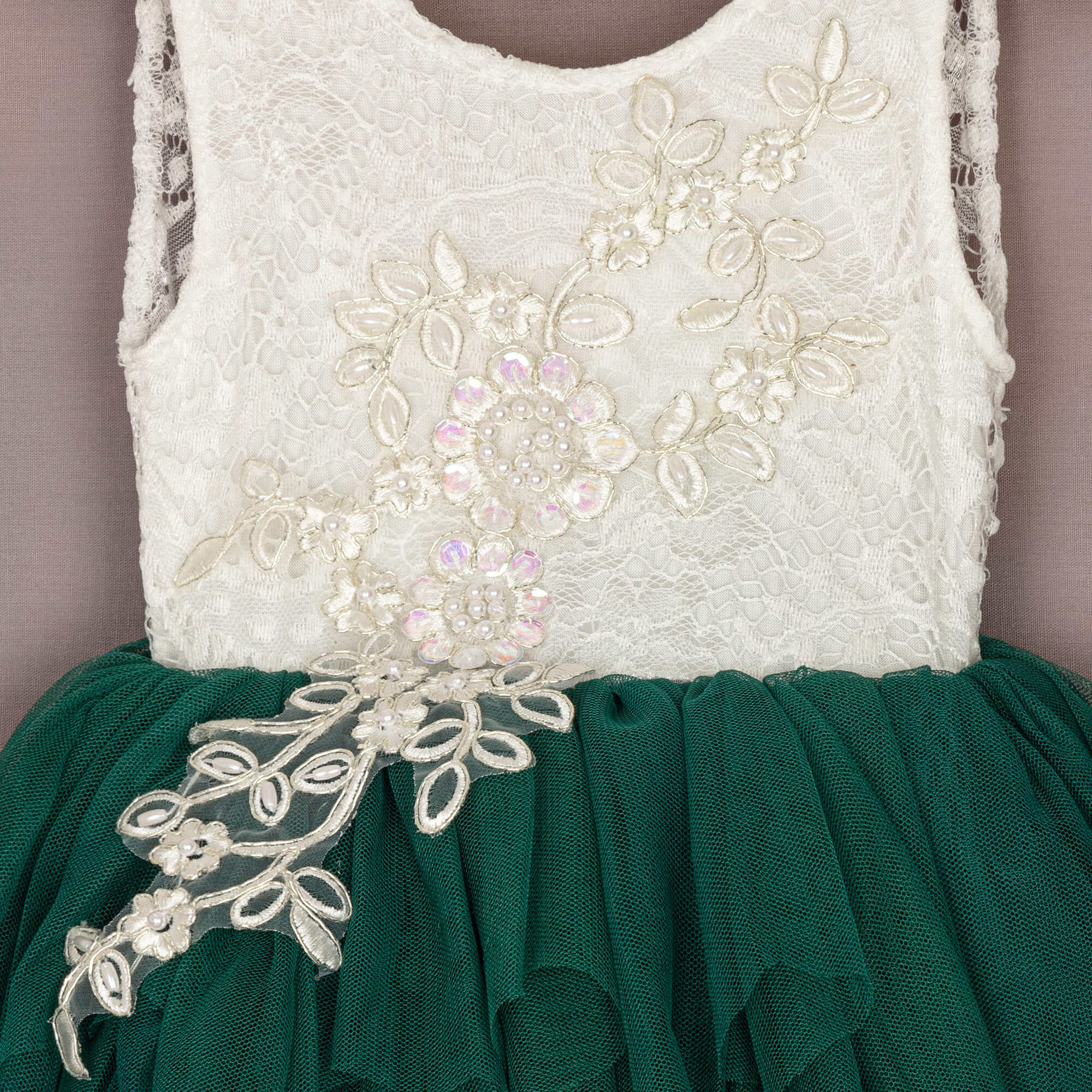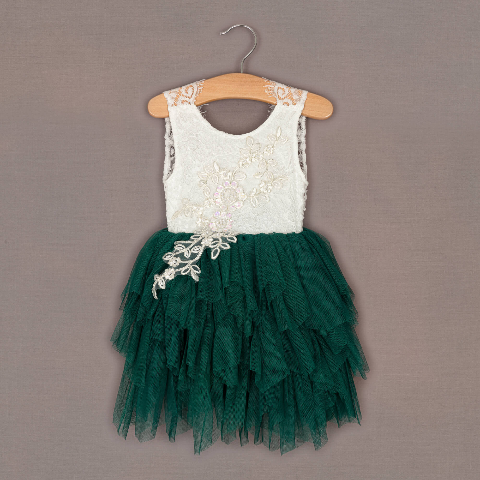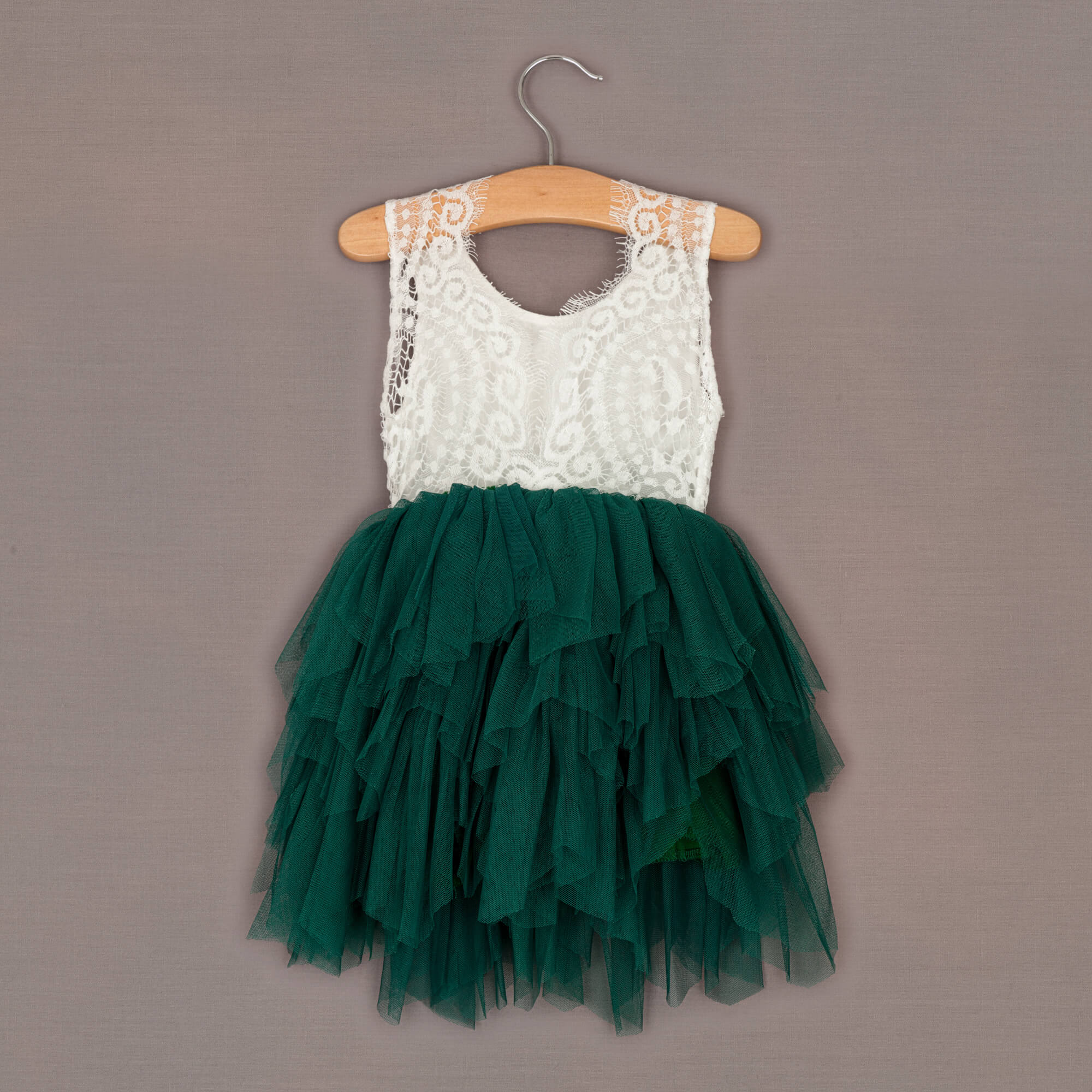 Diese sind so umwerfend, ein wirklich wunderschönes Mädchenkleid für besondere Anlässe. Das weiße Obermieder ist aus weichster weißer Qualitätsspitze gefertigt. Auf der Brust gefüttert und mit einer hübschen Spitzen- und Perlenapplikation versehen. Dazu passt perfekt der üppigste Tutu-Rock aus sattem, tiefgrünem Tüll.