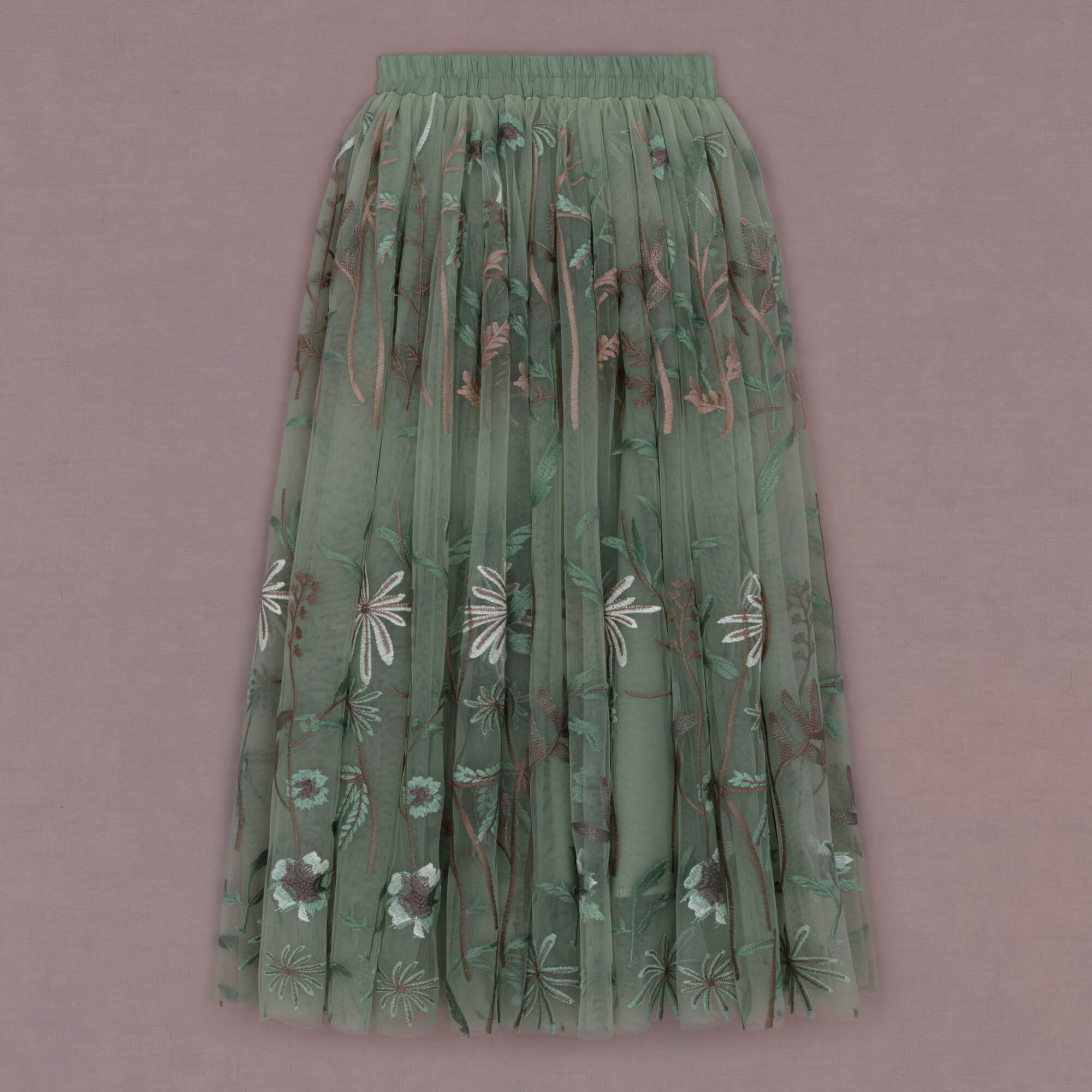 The Felicity Couture Set pairs the softest lace crop top with a flowing, layered tulle skirt in a dreamy sage green. The skirt features delicate embroidery and falls to a graceful maxi length, depending on height, with a fully lined finish and a gently elasticated waistband for comfort and movement.