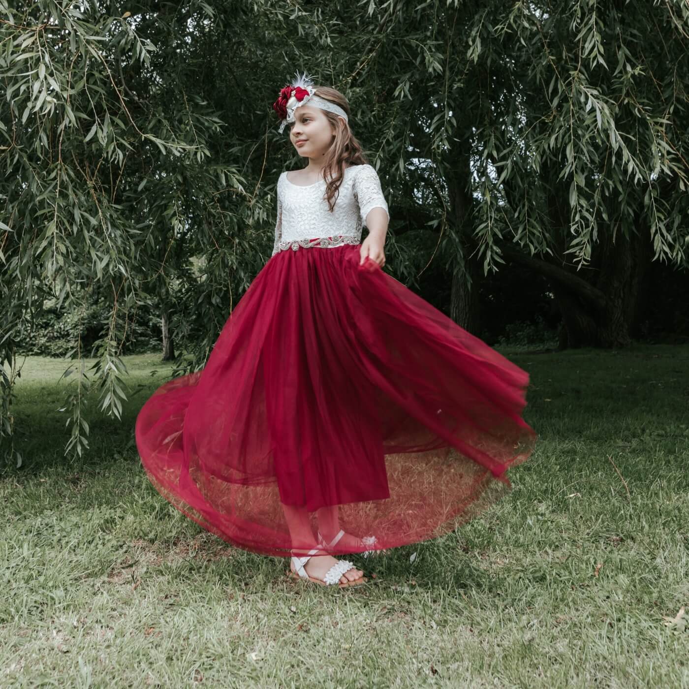 Ceci est parfaitement assorti à une jupe en tulle pleine longueur droite en couches de couleur vin bordeaux profond.