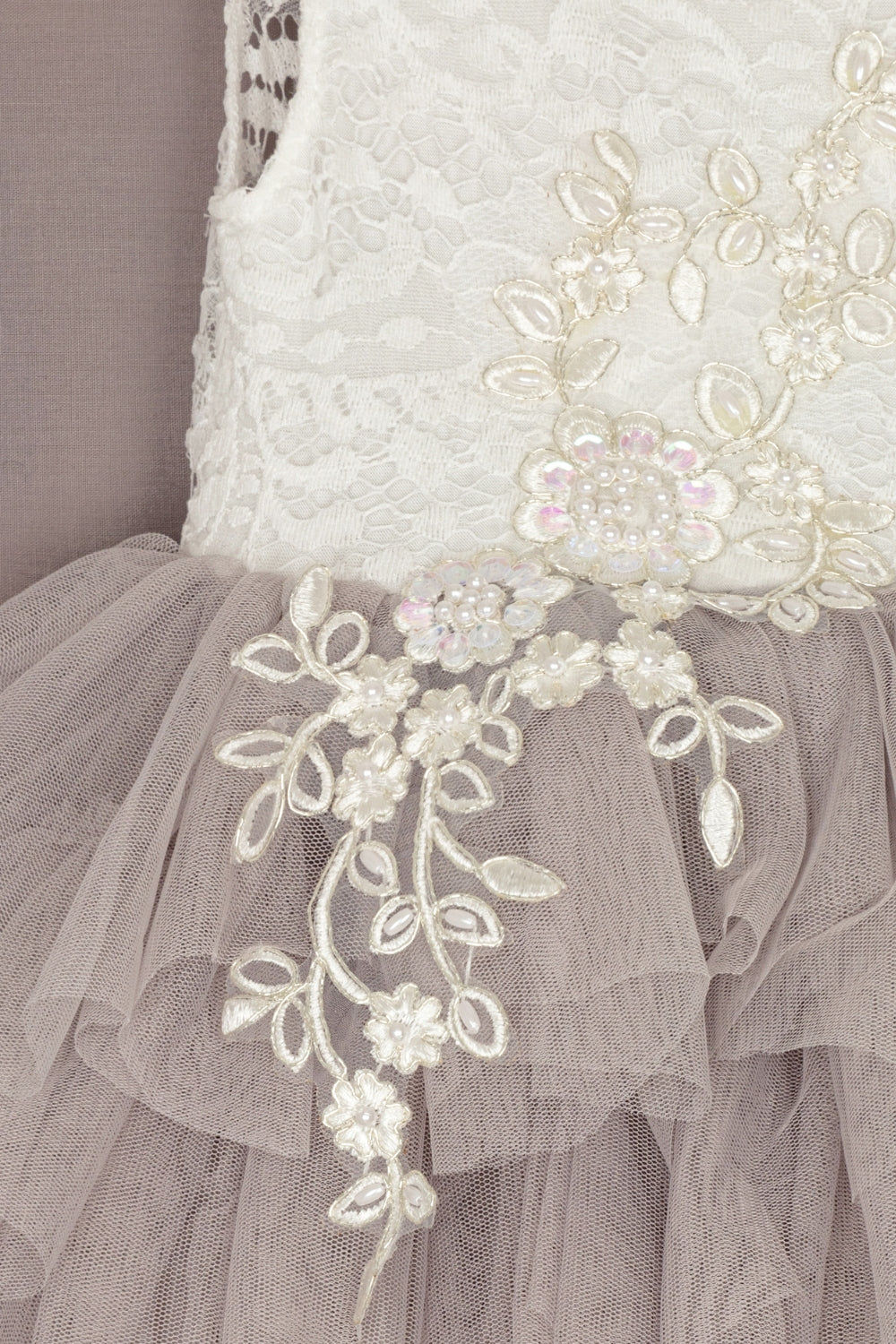 Ce sont tellement superbes, une très belle robe d’occasion pour filles. Le corsage supérieur doublé blanc cassé est fabriqué avec la dentelle blanche de qualité la plus douce. Le design présente une jolie applique en dentelle et en perles. Ceci est parfaitement assorti à la jupe tutu en tulle argenté clair la plus complète.
